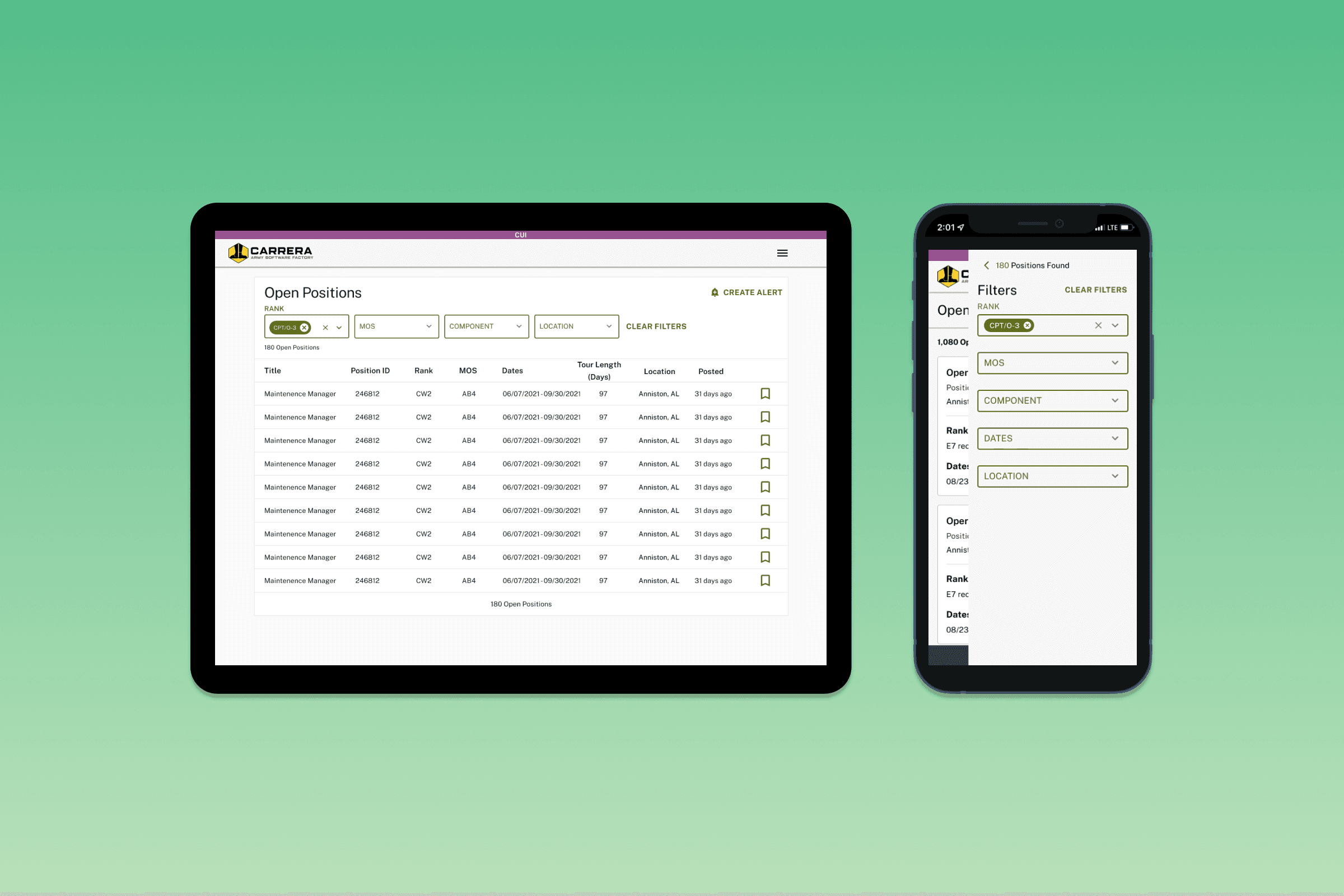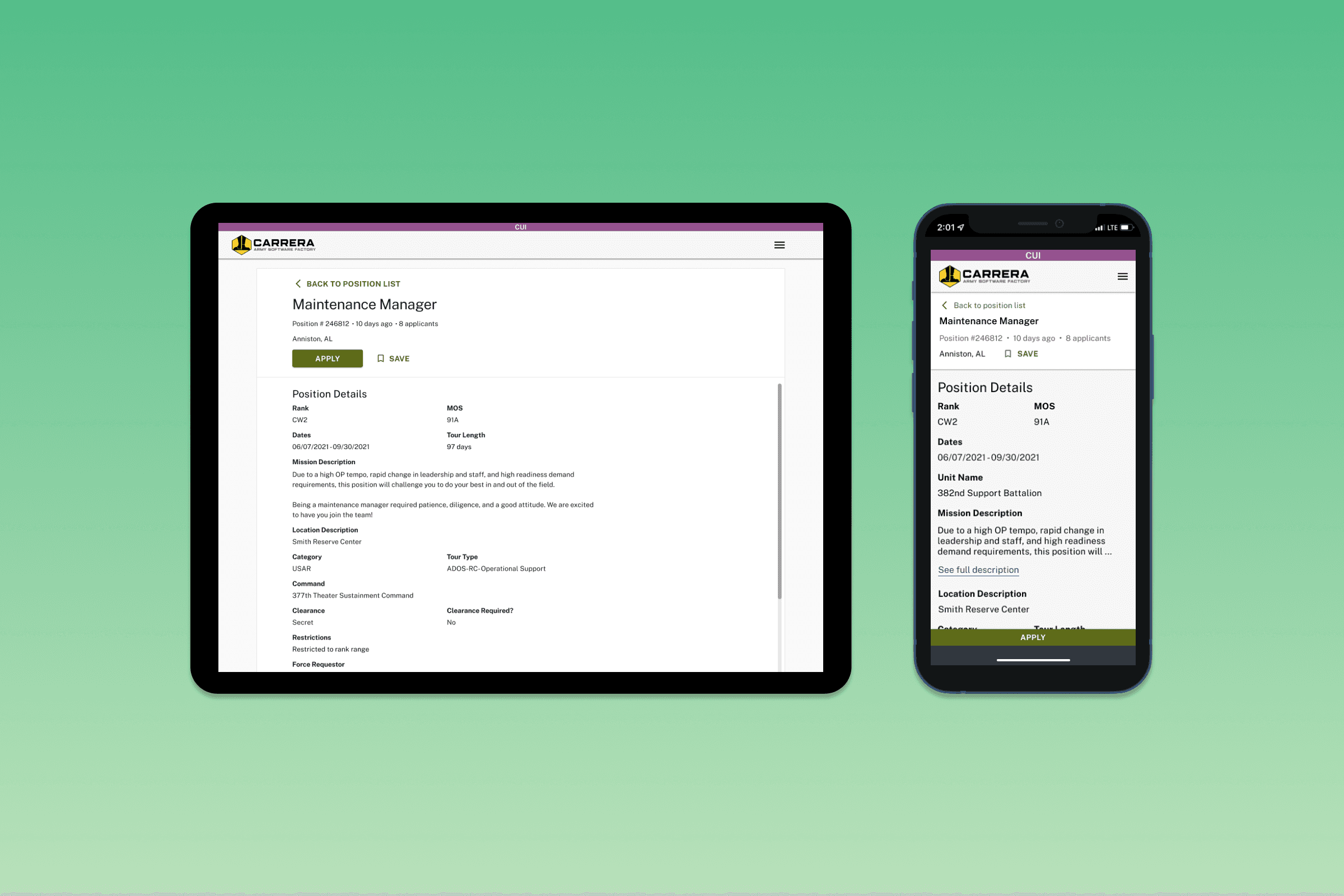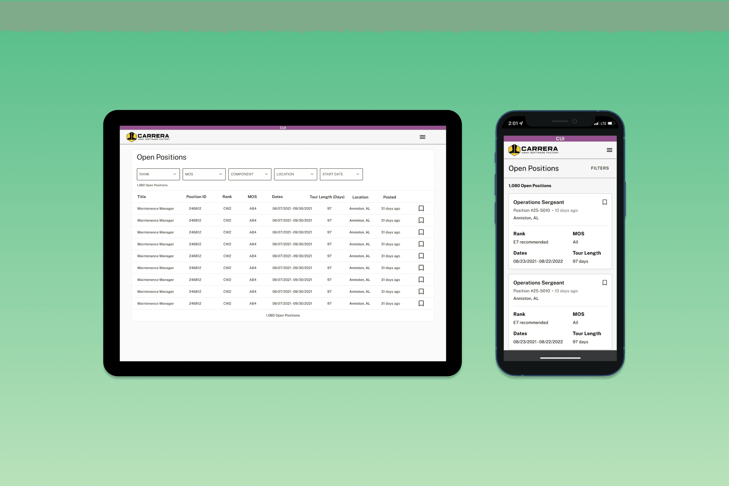 The product dramatically reduced the need for soldiers to travel to a physical base simply to view available positions. Soldiers could now discover opportunities remotely, compare roles, and apply before positions closed.